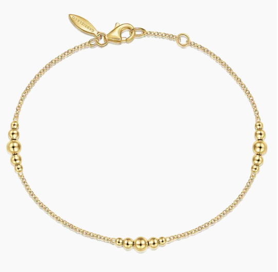 14K YELLOW GOLD GRADUATING BEAD STATIONS BRACELET